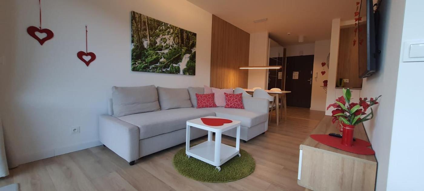 Apartament z 1 sypialnią, balkonem i widokiem na góry. This apartment features a fireplace. This apartment comprises 1 living room, 1 separate bedroom and 1 bathroom with a walk-in shower and a hairdryer. Guests can make meals in the kitchen that comes with a stovetop, a refrigerator, a dishwasher and kitchenware. Featuring a terrace with garden views, this apartment also provides a washing machine and a flat-screen TV. The unit offers 2 beds. Apartament - 4 osobowy. Powierzchnia pokoju ok.: 40 mkw.