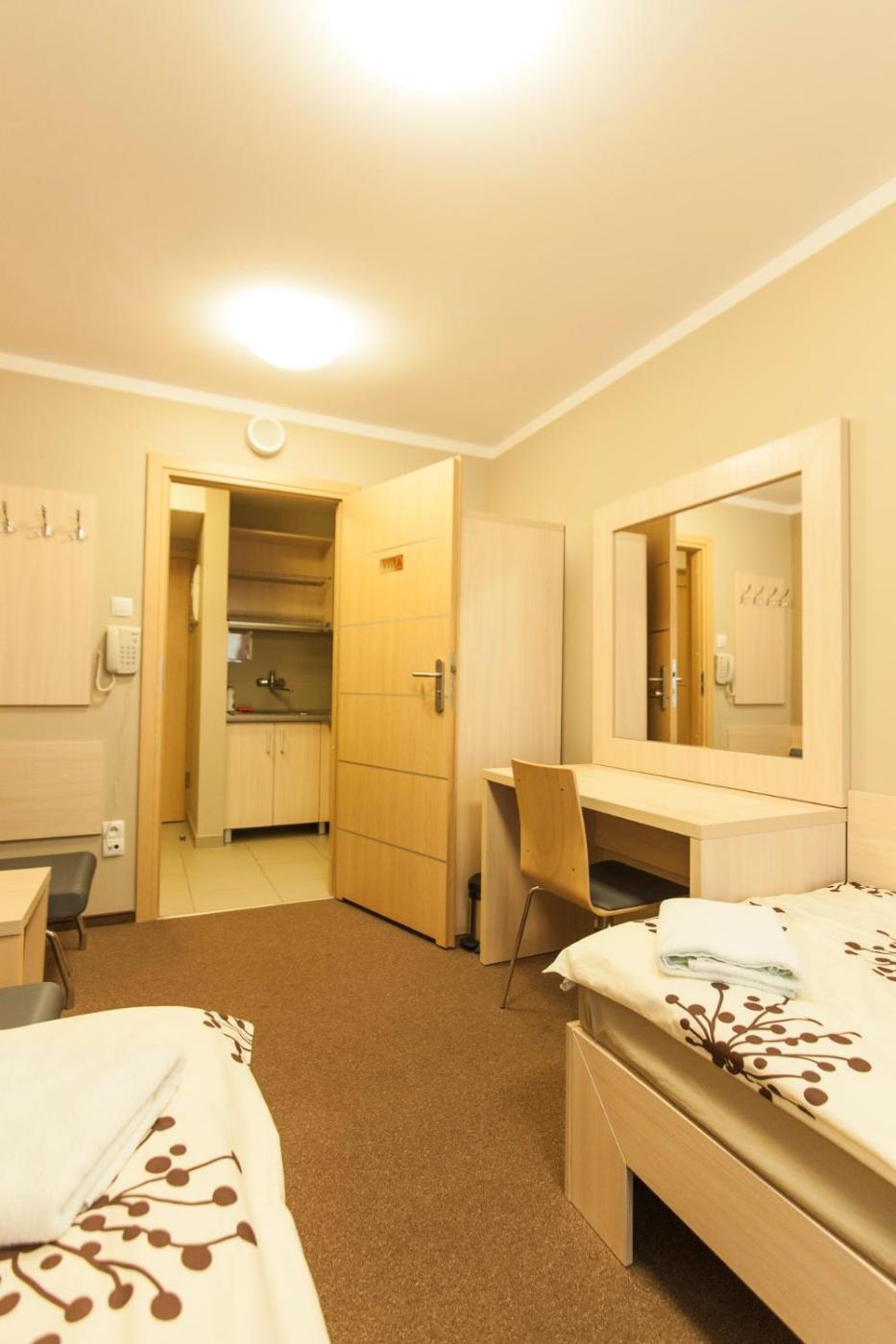 Pokój typu Twin Comfort ze wspólną łazienką. The twin room offers a wardrobe and a carpeted floor, as well as a shared bathroom boasting a shower. In the kitchenette, guests will find a refrigerator, kitchenware, a microwave and an electric kettle. Rooms on the upper floors are reachable by lift. The unit has 2 beds. Pokój z 2 łóżkami pojedynczymi - 2 osobowy. Powierzchnia pokoju ok.: 12 mkw. ;