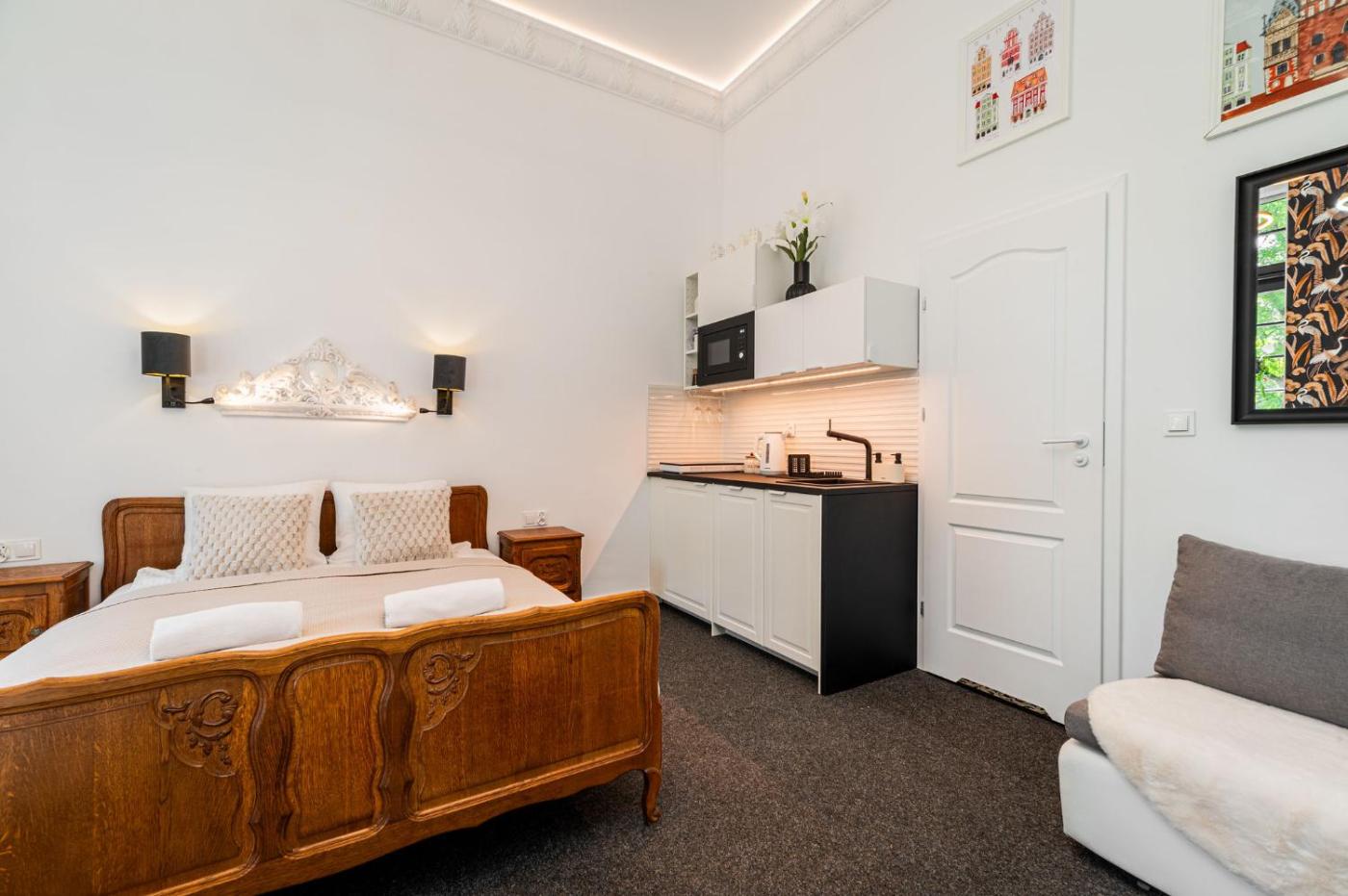 Apartament typu studio. W kompletnie wyposażonym aneksie kuchennym przygotowano dla gości płytę kuchenną, piekarnik, przybory kuchenne i lodówkę. Apartament oferuje pralkę, prywatne wejście, balkon z widokiem na miasto oraz prywatną łazienkę z prysznicem. W tej opcji zakwaterowania jest dostępne 1 łóżko. Apartament - 2 osobowy. Powierzchnia pokoju ok.: 21 mkw. ;